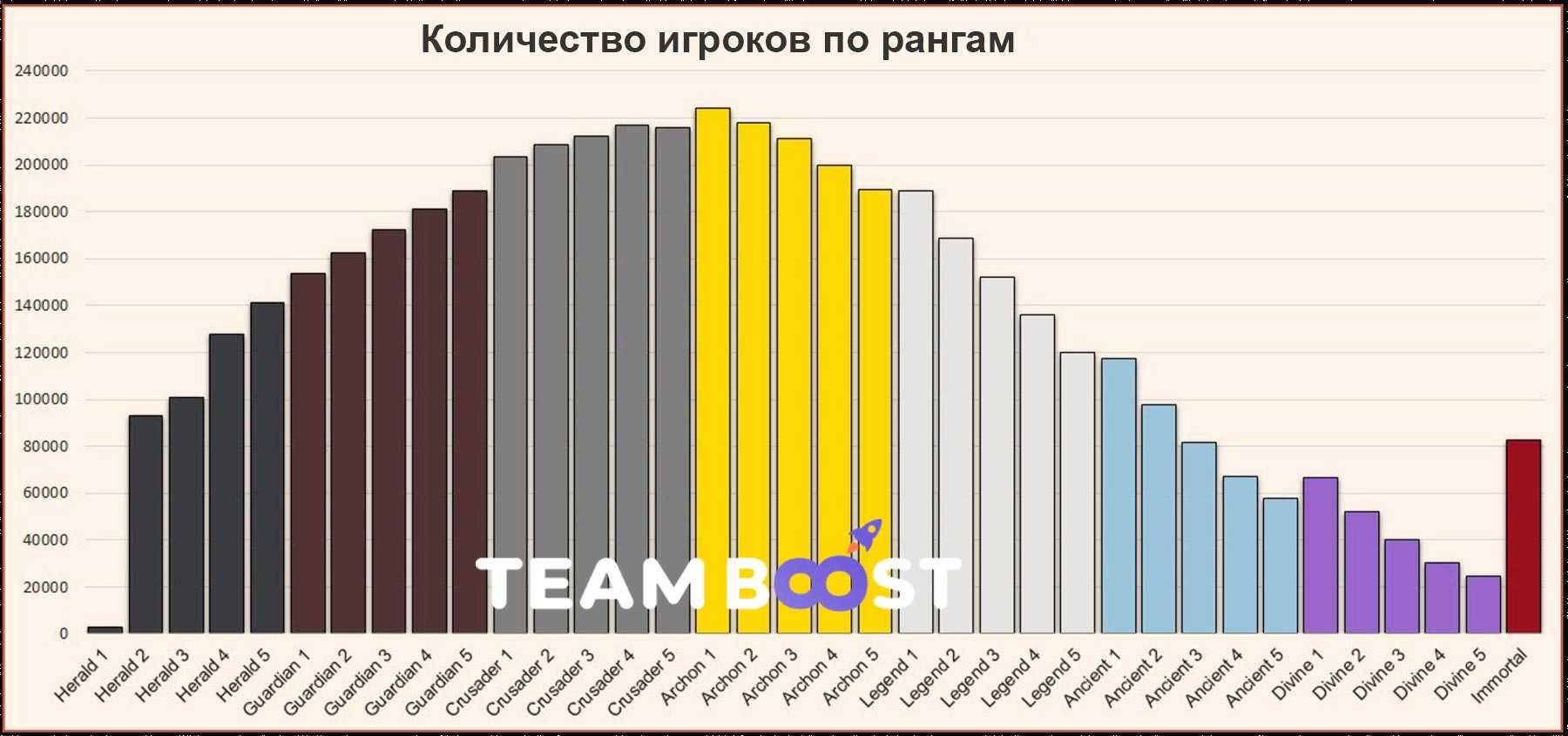 Количество игроков Дота 2 по рангам: