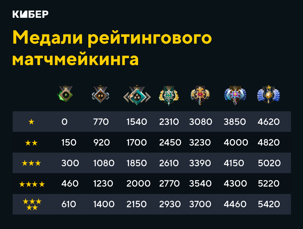 Таблица рейтинга Дота 2 2023, сколько ммр нужно для медалей в сезоне Dota 2?
