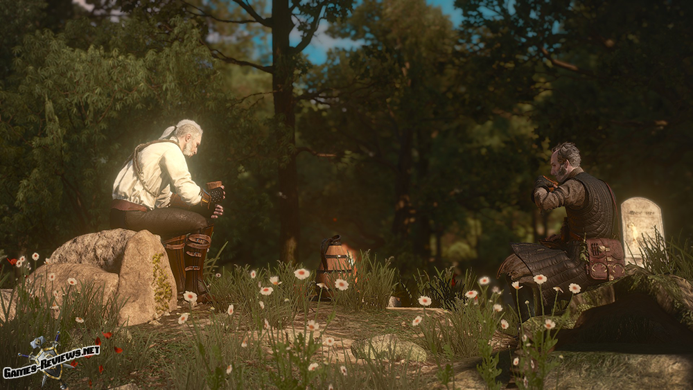 Однако и примирение сестер — еще не конец этой истории. Завершается она пьянкой Геральта и Региса на одном из боклерских кладбищ. Не самое необычное место для ведьмака и одно из наиболее излюбленных для вампира.
