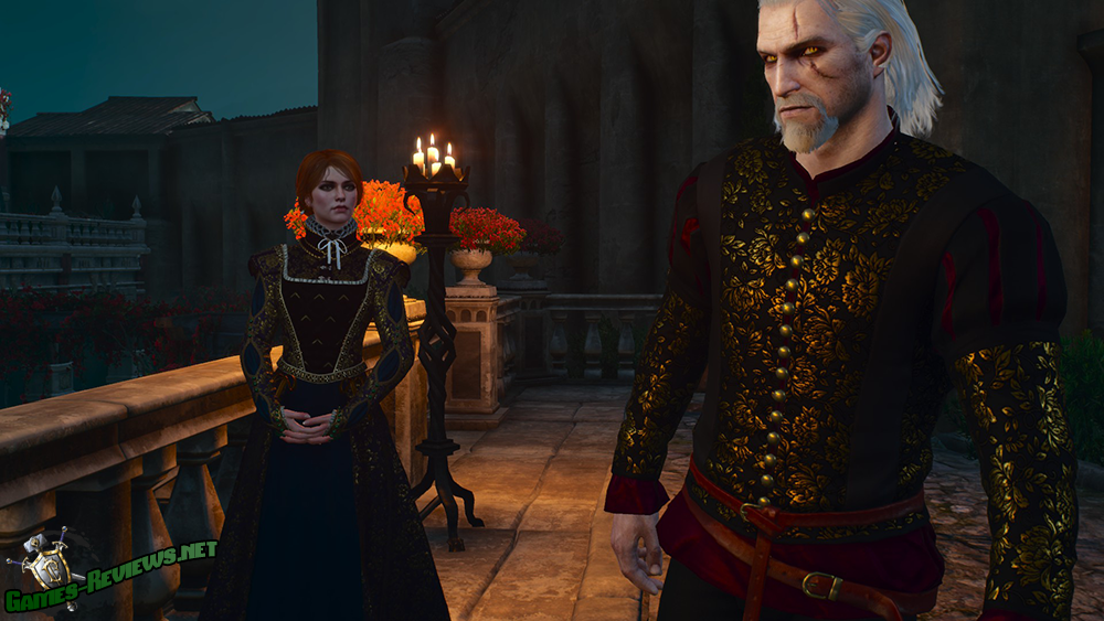 Будучи знатным скопидомом и коллекционером, Геральт всегда уделял куда больше внимания крепкой надёжной броне и острым мечам нежели официальным нарядам, так что не удивительно, что одеяний для важных мероприятий он с собой в Туссент не захватил. Дабы не вешать почётный орден на грязный и неопрятный доспех, княгиня Анна-Генриетта отправила ведьмака к портному Пьеру. Здесь-то задание и начнётся, демонстрируя нам вельможный вид Белого Волка и его исконно аристократическую выдержку. Геральт явно не оценил золотисто-голубой кафтан, пошитый из лучших материалов по всем правилам портновского искусства и считает, что выглядит в нём как шут… и он, в общем-то, прав, но давайте сойдёмся на том, что у меня просто нет ни единой крупицы вкуса. К тому же, без глупого наряда ведьмака и на расстояние пушечного выстрела к мероприятию не подпустят, поскольку при дворе огромное значение придаётся форме, традициям и этикету.