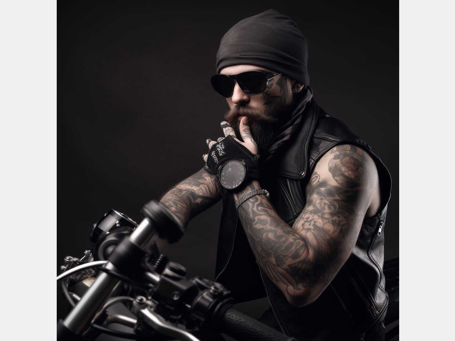 Издалека татуировки выглядят правдоподобно, но если приглядеться, то становится заметно, что это хаос, не имеющий смыслаИзображение: Midjourney / Skillbox Media