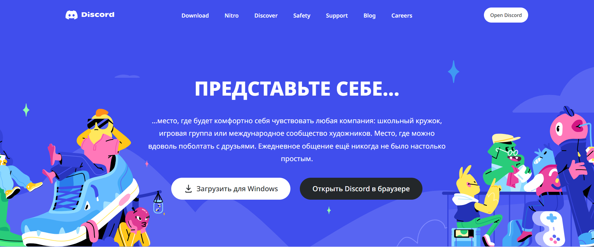 - Зарегистрироваться в Дискорде и создать учетную запись или перейти в браузерную версию приложения, которая работает на ПК без авторизации на сайте.