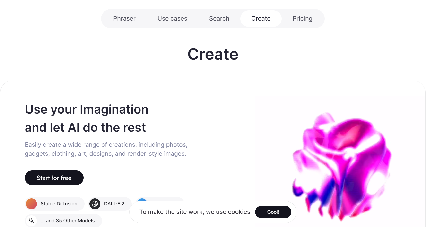 - Phraser. Генератор запросов Миджорни, который подойдет для создания простых запросов. Чтобы начать пользоваться сервисом, необходимо зарегистрироваться через Discord или Google. Платформа работает с Midjourney, Dall-E 2 и Stable Diffusion. Также в Phraser можно купить подписку и активировать дополнительные функции.