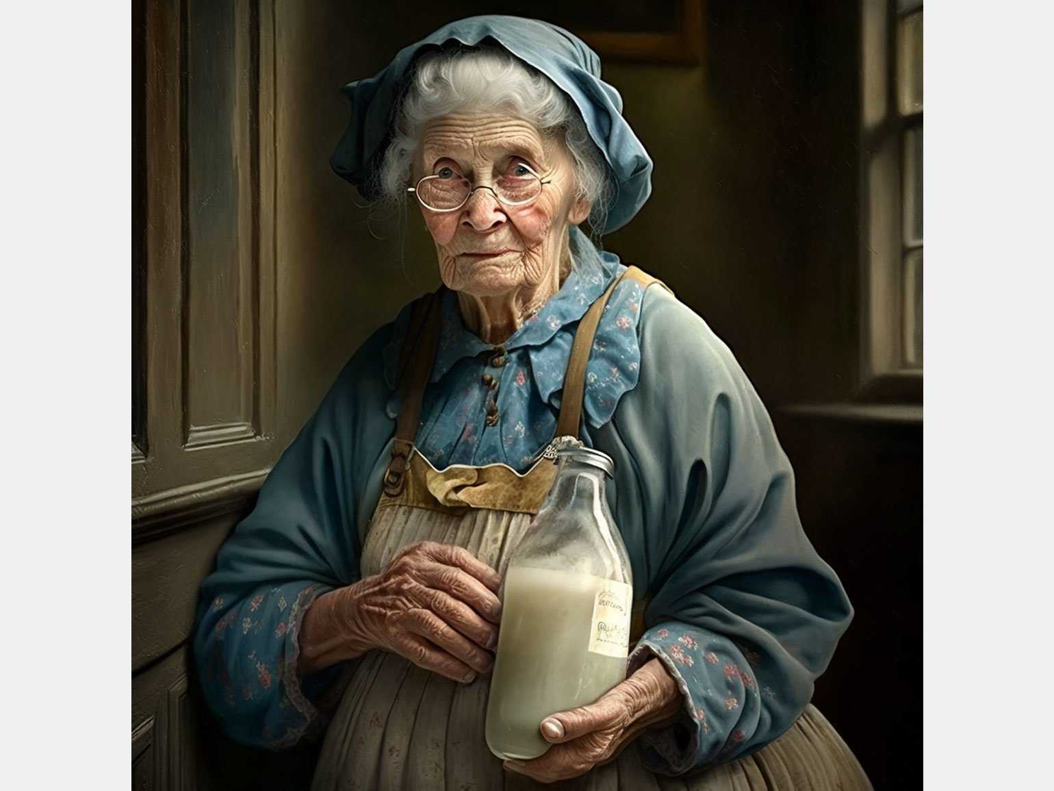 На нейросетевое происхождение этой крестьянки указывает странный наряд и количество пальцев на рукеИзображение: Midjourney / Skillbox Media