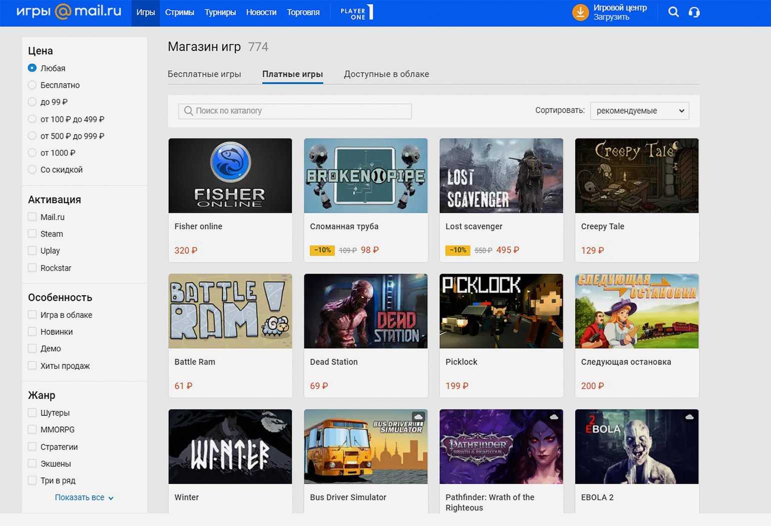 Страница магазина игр на сайте Mail.ru Скриншот: Skillbox Media