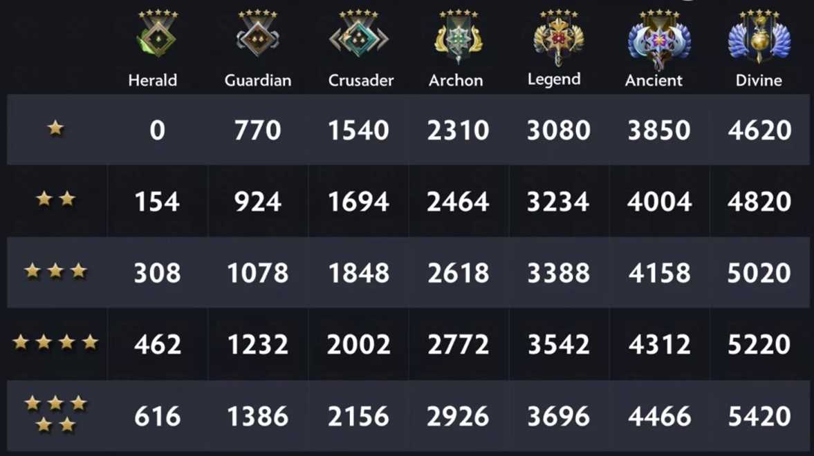Каждый ранг содержит в себе 5 звёзд. Игрок не сможет сразу перейти с «Властелина» на «Божество». Для этого ему сначала придётся дойти с «Властелина 1» (одна звезда) до «Властелина 5» (пять звёзд). Выше пятого этапа ничего нет, кроме следующего ранга, поэтому, набрав требуемое количество рейтинга, игрок получит не «Властелин 6», а «Божество 1». И так происходит с каждым рангом, кроме Титана.