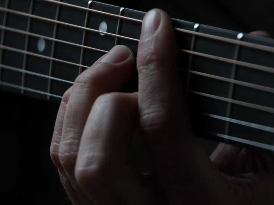 Достичь этого проще, чем может показаться. Вам не нужно вымерять угол с транспортиром. Прижимать струну нужно не всей мочкой пальца, а той её частью, которая расположена на самом его конце. Непосредственно перед ногтем. Ноготь, как вы понимаете, должен быть подстрижен. Именно эта часть пальцев впоследствии ороговеет, и станет нечувствительной к боли