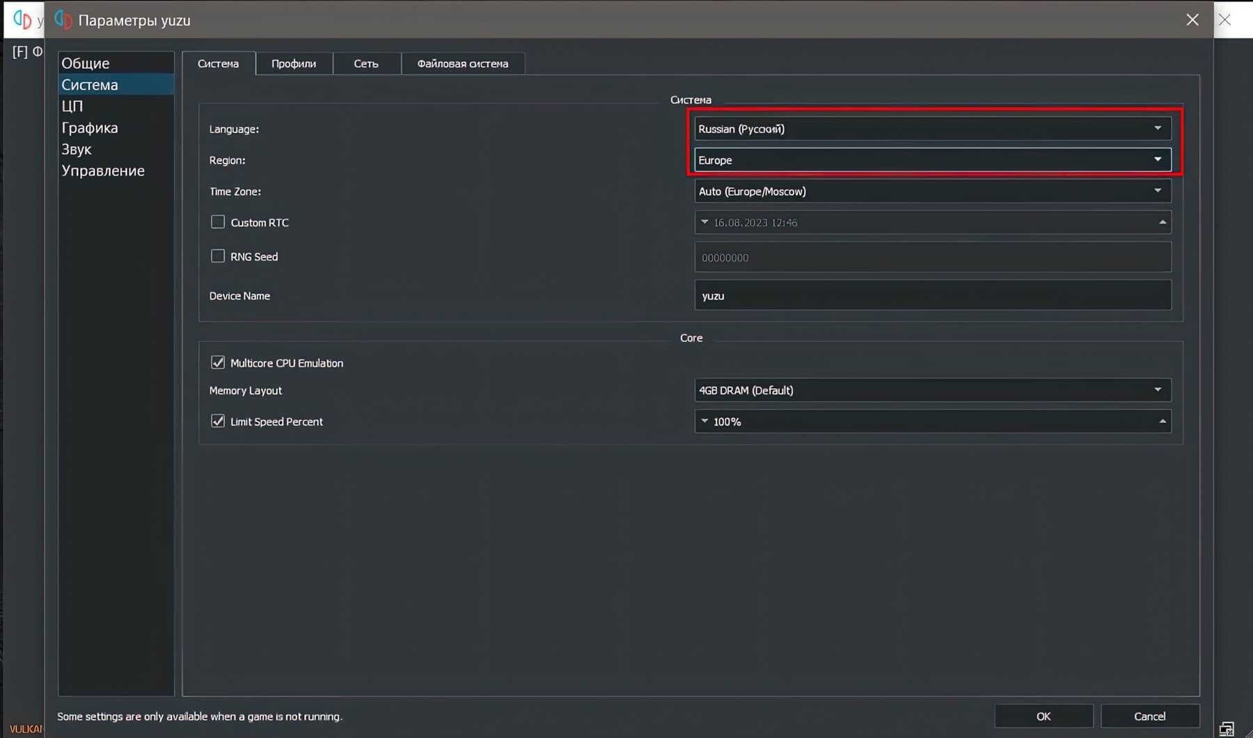 Здесь выберите русский язык и регион Европа, чтобы игры, у которых есть русский язык, при запуске на эмуляторе игра была сразу на русском языке. Другие параметры я оставляю по умолчанию.