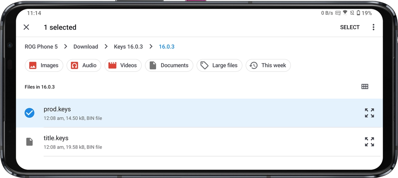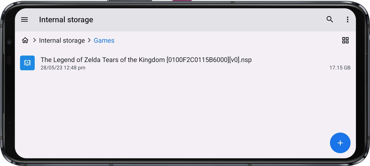 2. Open your device’s file manager and paste the ROM file (NSP or XCI) into the folder you selected as the Games directory. In this case, it is the “Games” folder.