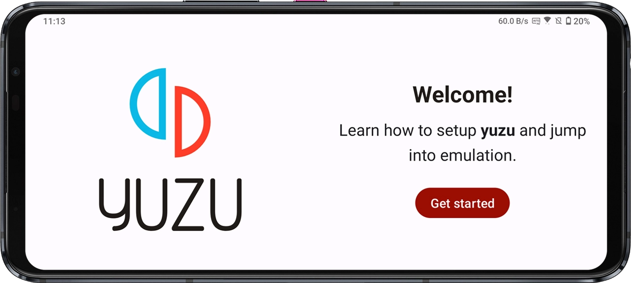 2. Launch the Yuzu emulator. Once it opens, you will see a screen with a “Get Started” button. Click on it.